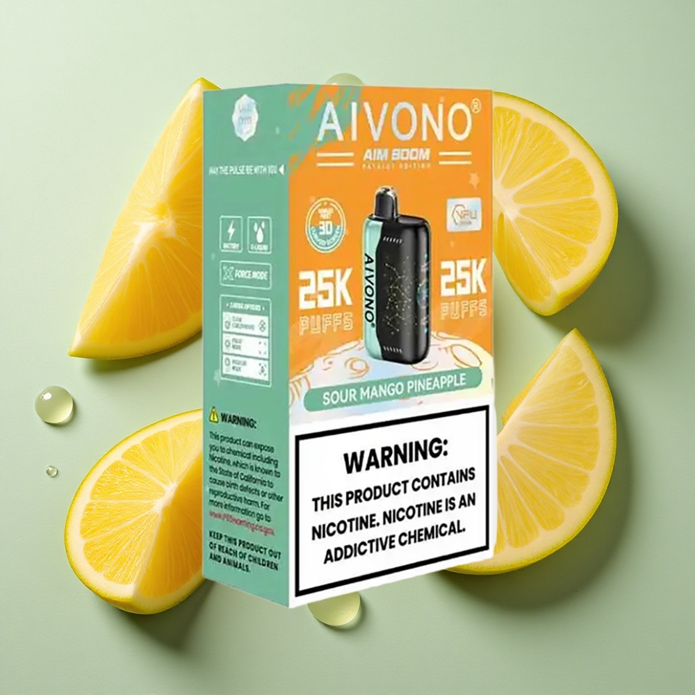 Aivono Aim Boom 25000 Puffs Sūrus Mango Ananasas 28ml Skystis 650mAh Baterija