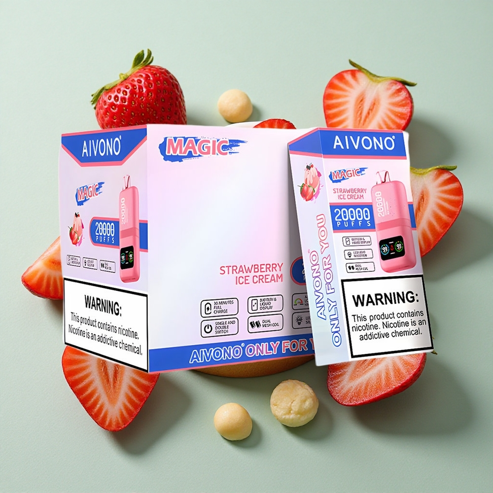 Aivono Aim Magic 20000 Puffs Dual Mesh Coils Braškėmis ir Ledais