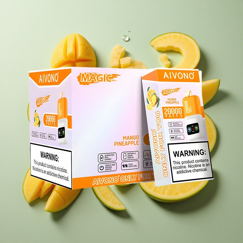 Aivono AIM MAGIC 20000 Puffs Mango Ananasas Tipas-C Krovimas LCD Ekranas