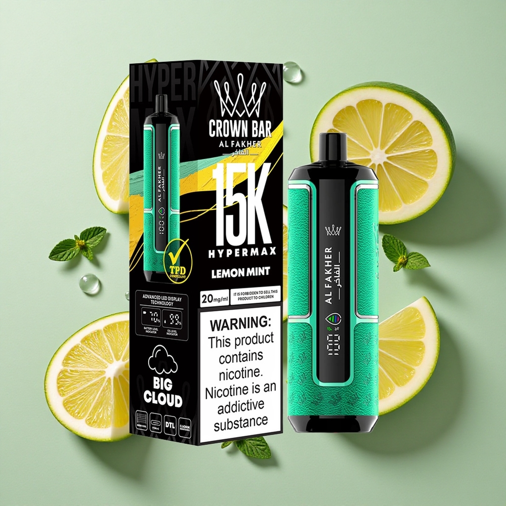 Al Fakher Crown Bar 15K Hypermax Vienkartinis Vaporizatorius Citrina Mėta 22ml 600mAh