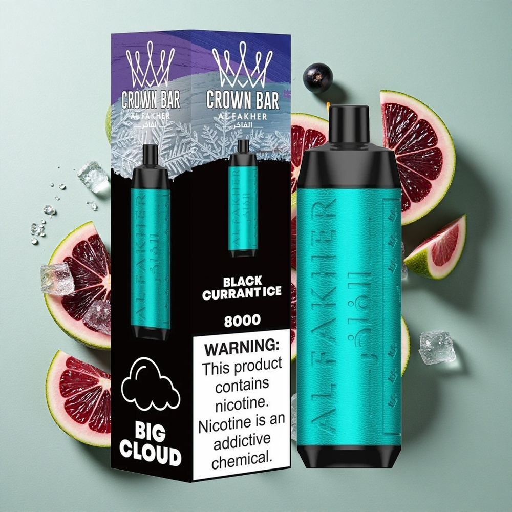 Al Fakher Crown Bar 8000 Juodųjų Serbentų Ledas Vienkartinis Vape 18ml Talpa 5mg Nikotino