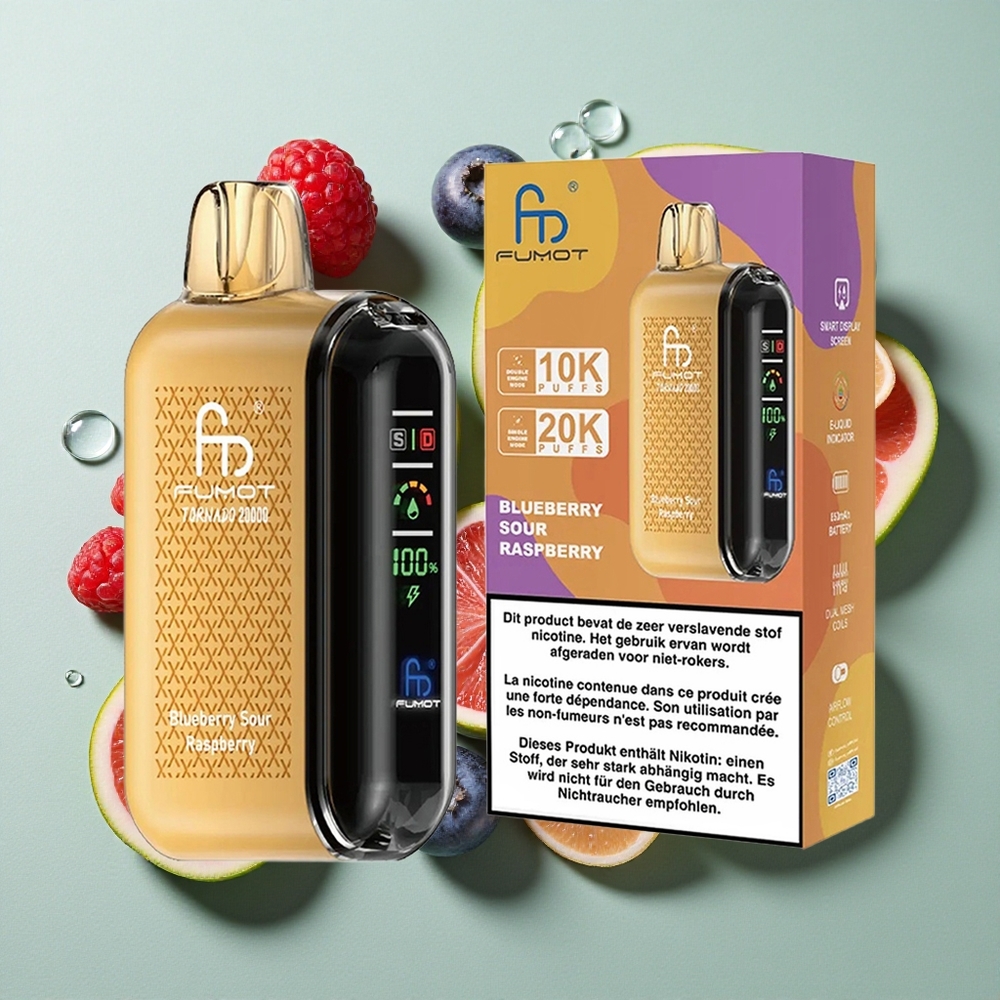 Fumot Tornado 20000 Puffs Mėlynės Gervuogės ir Rūgščios Avietės Dual Mesh Coil Smart Display