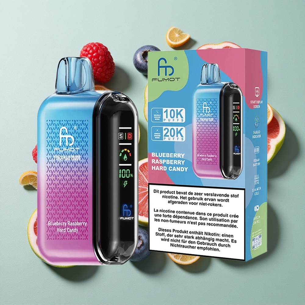 Fumot Tornado 20000 Puffs Mėlynųjų Aviečių Sausainių Dviguba Tinklelinė Apvija 20ml Talpa
